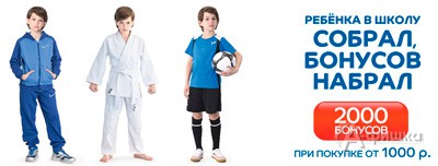 В сети магазинов спортивных товаров «Спортмастер» с 8 августа по 5 сентября 2016 г. проходит акция – совершите любую покупку от 1000 руб. и получите 2000 бонусных балов на свою клубную карту!