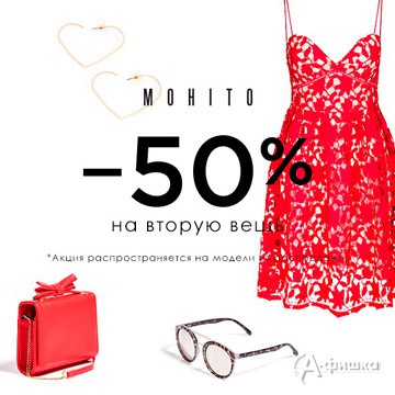 В магазине модной женской одежды «Mohito» с 10 по 17 августа 2016 г. действует специальное предложение – скидка 50% на вторую вещь из распродажи!