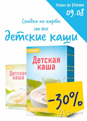 Только 9 августа 2016 г. в гипермаркетах «Лента» в Белгороде проходит акция – скидка 30% на все детские каши, скидка 20% на все детские молочные продукты и скидка 20% на весь корм для животных по карте «Лента»!