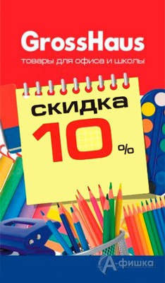 В магазине товаров для школы и офиса «GrossHaus» в Белгороде до конца августа 2016 г. проходит акция на весь ассортимент: при покупке от 1000 руб. – скидка 5%, а от 3000 руб. – скидка 10%!
