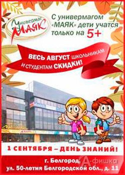 Весь август 2016 г. в универмаге «Маяк» в честь приближающегося Дня знаний школьникам и студентам предоставляются скидки!