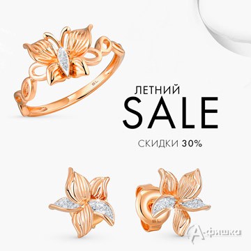 В ювелирных магазинах «Sunlight» проходит распродажа «Летний Sale» – скидка 30% на часы, украшения из золота и серебра и многое другое!