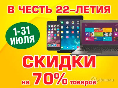До 31 июля 2016 г. в магазинах «РЕТ» в честь 22-летия проходит акция – покупателям предоставляются скидки от 7% на 70% товаров!