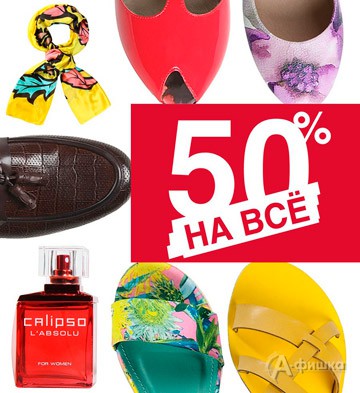 В фирменных салонах обуви и аксессуаров «Calipso» в Белгороде с 15 по 18 июля 2016 г. действует скидка 50% на весь ассортимент!