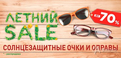 В салоне оптики «Счастливый взгляд» в Белгороде с 11 июля по 4 сентября 2016 г. проходит акция «Летний Sale» – оправы и солнцезащитные очки со скидками до 70%!