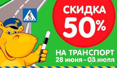 С 28 июня по 3 июля 2016 г. в гипермаркетах игрушек «Бегемот» действует скидка 50% на весь ассортимент игрушечного транспорта (машинки, самолеты).