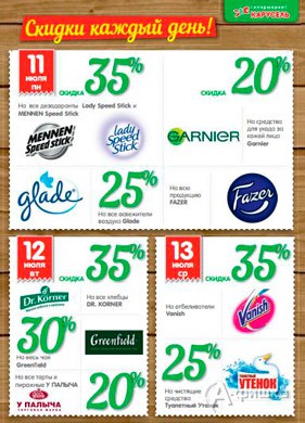 В июле 2016 г. в сети магазинов парфюмерии, косметики и бытовой химии «7 дней» в Белгороде проходит акция «Жаркие цены» – скидки до 50% каждый понедельник и каждую пятницу на различные группы товаров!