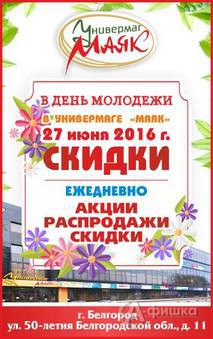 День молодёжи в белгородском универмаге «Маяк»! С 27 июня по 3 июля 2016 г. всем, кто молод душой – скидки!