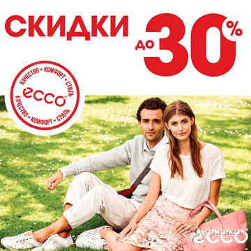 В сети магазинов обуви и аксессуаров «Ecco» объявлен старт сезона скидок – скидки до 30% на комфортную обувь и летние аксессуары.