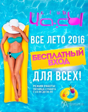 В ночном клубе «Ча:сы» в Белгороде акция «Летний FreeDance» – всё лето 2016 г. бесплатный вход для всех!