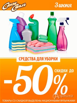 Только 3 июня 2016 г. в сети магазинов косметики и бытовой химии «Санги Стиль» действуют скидки от 25 до 50% на средства для уборки, для стирки, для мытья посуды и освежители воздуха!