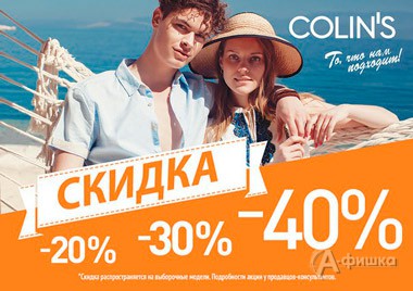 В фирменных магазинах одежды «Colin’s» с 3 июня 2016 г. на выборочные модели действуют первые летние скидки до 50%!