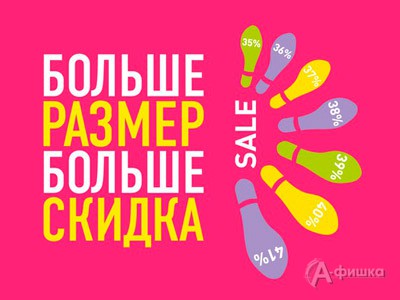 До 12 июня 2016 г. в фирменных салонах обуви и аксессуаров «Calipso» в Белгороде снова проходит акция «Больше размер – больше скидка»! Получите скидку на обувь, соответствующую Вашему размеру.
