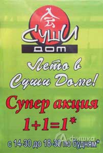 До конца лета в ресторане «Суши Дом» в Белгороде проходит акция «Лето в Суши Доме»! Каждый будний день с 14:30 до 18:30 «1+1=1» – при покупке одного ролла второй в подарок!