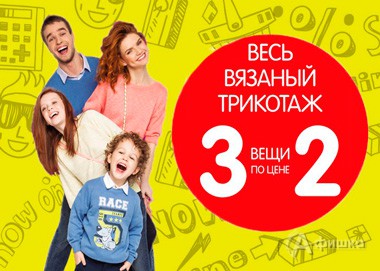 С 22 марта по 4 апреля 2016 г. в магазинах одежды «Funday» в Белгороде действует суперакция «3 вещи по цене 2» на весь вязаный трикотаж – берёте три вещи, а платите только за две!
