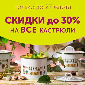 В гипермаркете домашних товаров «Уютерра» только до 27 марта 2016 г. действуют скидки до 30% на все кастрюли!