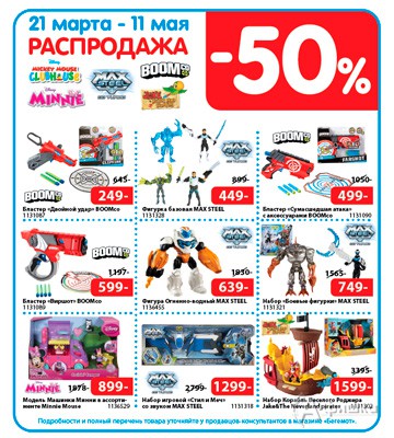 С 21 марта по 11 мая 2016 г. в гипермаркетах игрушек «Бегемот» проходит весенняя распродажа – на выделенный ассортимент игрушек cкидка 50%!