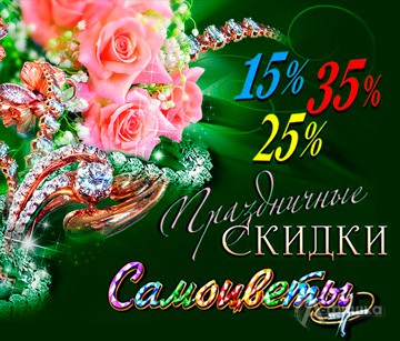 В ювелирных салонах «Самоцветы+» в Белгороде до 13 марта 2016 г. действуют праздничные скидки от 15 до 35%!