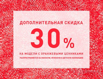 В магазине «Reserved» в Белгороде до 29 февраля 2016 г. действует дополнительная скидка 30% на модели с оранжевыми ценниками.