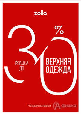 В магазинах одежды «Zolla» с 25 февраля 2016 г. действует специальное предложение – на выборочные модели верхней одежды скидки до 30%!