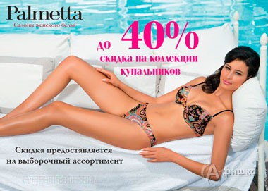 В фирменных салонах женского белья «Palmetta» только с 12 по 28 февраля 2016 г. действуют скидки до 40% на модные коллекции купальников!