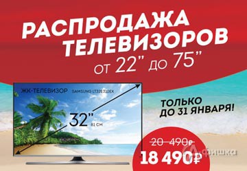 В цифровых супермаркетах «DNS» Белгорода только до 31 января 2016 г. проходит распродажа телевизоров – акционные телевизоры до 22'' до 75'' доступны как никогда!