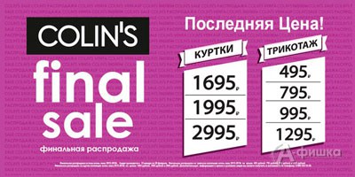 В фирменных магазинах модной одежды «Colin’s» началась финальная распродажа зимней коллекции – до 15 февраля 2016 г. акция «Последняя цена»!