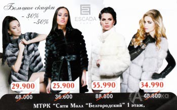 В честь открытия нового салона меха «Escada Furs» в Белгороде действуют большие скидки до 50% на женскую одежду из меха!