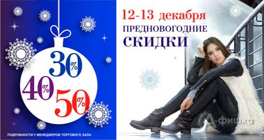 В сети салонов обуви «Helmar» и «Rieker» в Белгороде 12 и 13 декабря 2015 г. действуют предновогодние скидки до 50% на обувь!