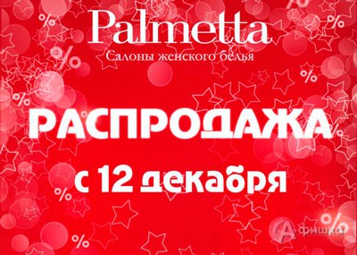 В фирменных салонах женского белья «Palmetta» с 12 декабря 2015 г. проходит сезонная распродажа – встречайте праздник долгожданных скидок на самые актуальные коллекции!