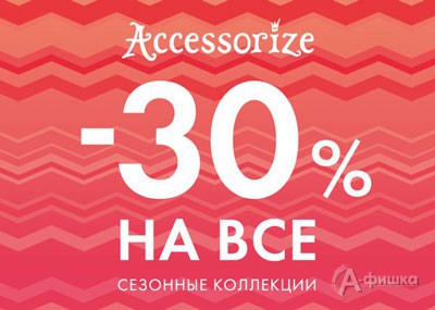 В магазине аксессуаров «Accessorize» в Белгороде проходит большая распродажа! На все украшения, кошельки, сумки, аксессуары и новогодние подарки из сезонных коллекций скидка 30%!