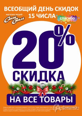 15 декабря 2015 г. в сети магазинов косметики и бытовой химии «Санги Стиль» всеобщий день скидок! Действует скидка 20% на все товары!