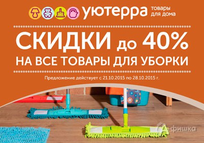 В гипермаркете домашних товаров «Уютерра» до 28 октября 2015 г. скидки до 40% на все товары для уборки!