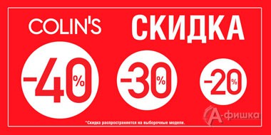 В фирменных магазинах модной одежды «Colin’s» с 28 октября по 13 ноября 2015 г. действуют первые скидки до 40% на новую коллекцию «Осень-Зима 2015»!