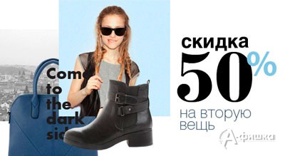 До 18 октября 2015 г. в магазинах обуви и аксессуаров «Centro» в Белгороде проходит акция: скидка 50% на второй товар с наименьшей стоимостью!