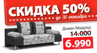 Только до 31 октября 2015 г. в магазинах группы фабрик «Много Мебели» мебель дешевле в 2 раза – на выделенный ассортимент скидка 50%!
