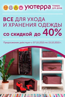 В гипермаркете домашних товаров «Уютерра» с 7 по 15 октября 2015 г. скидки до 40% на все товары для ухода и хранения одежды и обуви!