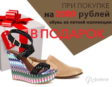 В магазине женской и мужской обуви и аксессуаров «Obuv.com» с 3 по 31 октября 2015 г. проходит акция – при покупке от 2000 руб. обувь из летней коллекции в подарок!