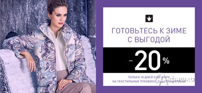 До 11 октября 2015 г. в магазине «Снежная Королева» в Белгороде действует акция «Готовимся к зиме с выгодой» – действует скидка 20% на новую коллекцию модных шуб, дублёнок, пуховиков и головных уборов из натурального меха!