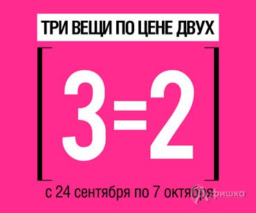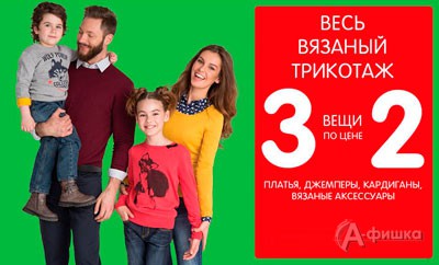 С 29 сентября по 19 октября 2015 г. в магазинах одежды «Funday» проходит акция «3=2»! Джемперы, кардиганы, вязаные платья и аксессуары: три вещи по цене двух! Участвуют мужские, женские и детские модели.