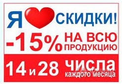 В сети магазинов парфюмерии, косметики и бытовой химии «7 дней» в Белгороде 14 и 28 числа каждого месяца действует скидка 15% на всю продукцию!
