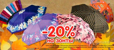 С 24 сентября по 7 октября 2015 г. в гипермаркете «Карусель» в Белгороде действует скидка 20% на зонты и домашнюю обувь!