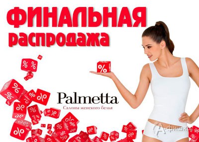 С 11 сентября 2015 г. в фирменных салонах женского белья «Palmetta» начинается финальная распродажа стильного белья и купальников сезона «Весна-Лето 2015»!