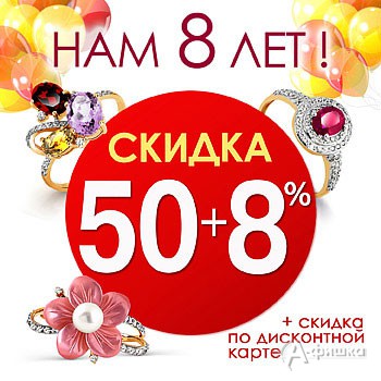 В ювелирных салонах «Линии любви» в Белгороде до 30 сентября 2015 г. проходит акция «Нам 8 лет»! На украшения скидки до 58%!