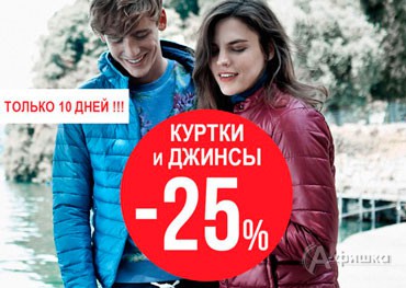 Только 10 дней в магазине молодежной одежды «Terranova» специальное предложение – скидка 25% на куртки и джинсы из новой коллекции!