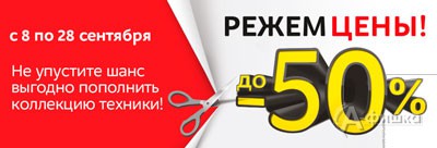 С 8 по 28 сентября 2015 г. в магазине «М.видео» проходит акция «Режем цены!» – не упустите шанс выгодно пополнить коллекцию техники! Покупайте с выгодой до 50%!