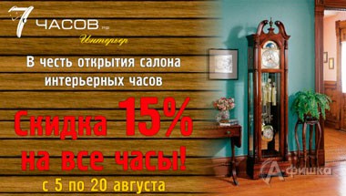 До 20 августа 2015 г. в честь открытия нового салона интерьерных часов «7 часов» в Белгороде на все часы действует скидка 15%!