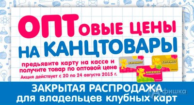 С 20 по 24 августа 2015 г. в гипермаркетах игрушек «Бегемот» в Белгороде проходит закрытая распродажа для владельцев клубных карт – приобретая любой товар из ассортимента канцтоваров, Вы получаете на него скидку до оптовой цены!