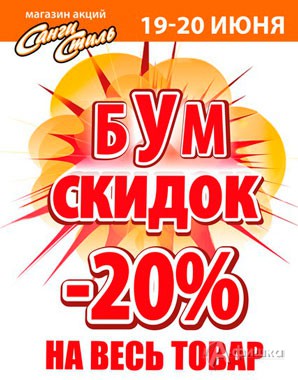 В магазинах косметики и бытовой химии «Санги Стиль» 19 и 20 июня 2015 г. бум скидок – скидка 20% на весь товар; скидка 50% на всю парфюмерию; скидки до 25% на декоративную косметику; скидки до 25% на товары различных категорий!