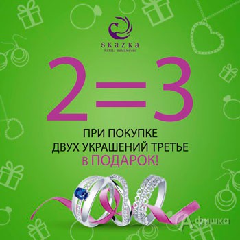 С 16 июня по 31 июля 2015 г. в фирменном магазине серебряных украшений «Skazka Natali Romanovoi» проходит акция «2=3» – купите два украшения бренда и получите третье в подарок!
